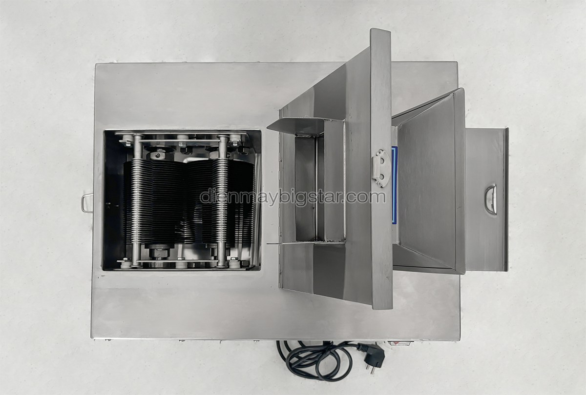 Toàn bộ thân máy được làm từ inox chống rỉ sét, đảm bảo an toàn thực phẩm, dễ dàng vệ sinh và có tuổi thọ cao.