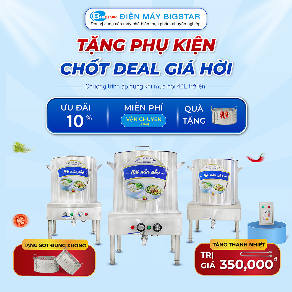 Nồi nấu phở bằng điện 100L hiện đại, sạch sẽ không khói bụi
